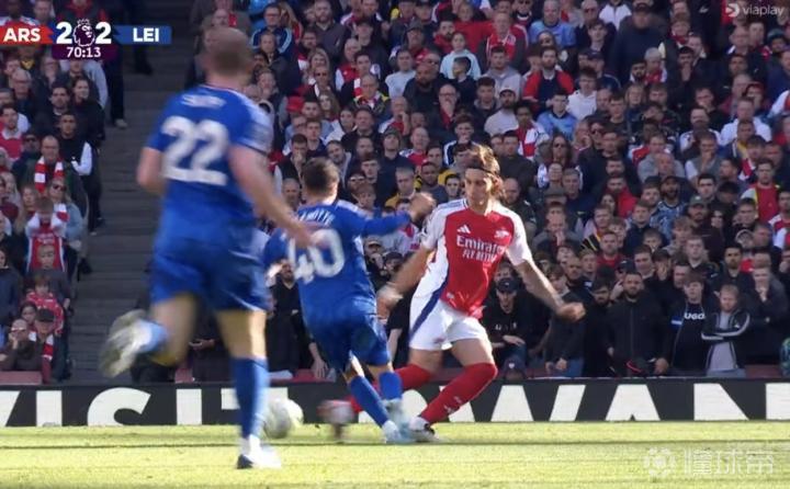 在阿森纳对阵莱斯特城的比赛中,焦点之一就是卡拉菲奥里的一次踩踏行为。当时比分2-2,卡拉菲奥里踩踏了对方球员博纳诺特的腿,这已经是他第二次犯规。然而,主裁判巴罗特并未对他出示第二张黄牌,这一决定引发了球迷和专家们的争议。